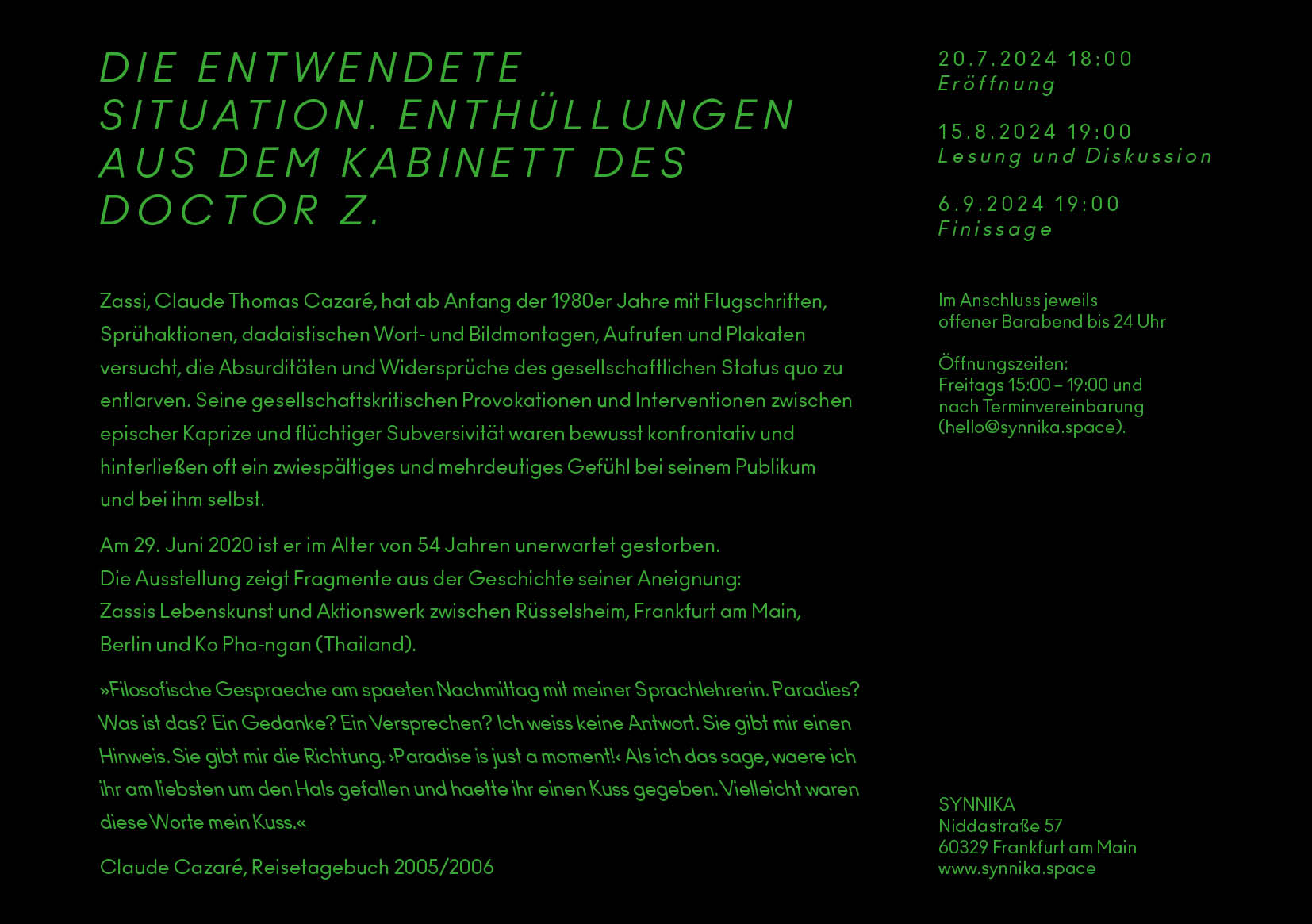 entwendete Situation. Enthüllungen aus dem Kabinett des Doctor Z.«. Nach